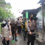 Mojokerto- Selain memperketat protokol kesehatan (prokes) sampai level RT, Satgas Covid-19 Kabupaten Mojokerto juga menggelar disinfeksi massal. Penyemprotan cairan disinfektan digelar