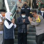 Surabaya – Usai melakukan kunjungan di masjid Agung Al-Fattah Mojokerto, Forkopimda lanjut melakukan pengecekan Protokol Kesehatan di Masjid Al-Akbar Surabaya.