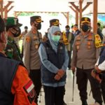 NGAWI,- Forkopimda Jawa Timur Khofifah Indar Parawansa, Pangdam V Brawijaya Mayjen TNI Suharyanto dan Kapolda Jawa Timur Irjen Pol Dr.