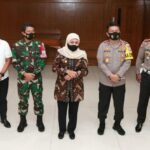 Surabaya – Gubernur Jawa Timur Khofifah Indar Parawansa, Pangdam V Brawijaya Mayor Jenderal TNI Suharyanto, dan Kapolda Jawa Timur Irjen