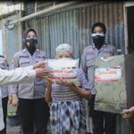 Bagi Bagi Sembako Kepada Warga, Polwan Polres Bangkalan Terus Berbagi di Tengah Pandemi