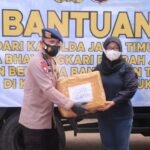 Dansat Brimob Polda Jatim Berikan Bantuan Sembako ke Korban Tanah Longsor dan Banjir di Nganjuk