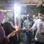 FOTO : (ist) . Kapolres Kediri Blusukan ke Pasar Bagikan Ribuan Masker . KEDIRI-Kapolres Kediri AKBP Lukman Cahyono S.I.K blusukan membagikan ribuan
