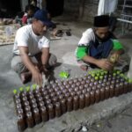 FOTO : Terlihat, para Santri Langgar Kulon secara sukarela membuat minuman atau Omben-omben. . KEDIRI- Banyak ragam dan cara dilakukan sejumlah kalangan