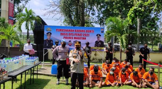 Pemusnahan Barang Bukti Hasil Ops Pekat 2021 Polres Magetan
