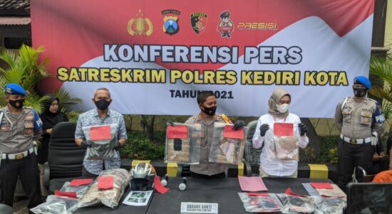 FOTO : Kapolres Kediri Kota, AKBP Eko Prasetyo, saat menggelar konferensi pers di Mapolres Kediri Kota, Jumat (5/3/2021). . Penulis : Moch