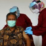 Pacitan – Bupati Indartato menjadi penerima pertama vaksinasi Covid-19 kategori lansia. Sesuai data kependudukan usia Pak In, panggilan akrabnya tercatat 64 tahun. Proses vaksinasi berlangsung di