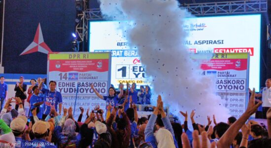 Magetan | jatim.siberindo.co – GOR Ki Mageti Kabupaten Magetan, mendadak jadi biru dengan hadirnya Caleg DPR RI Partai Demokrat, Edy Baskoro Yudhoyono