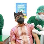 Banyuwangi – Bupati Banyuwangi Abdullah Azwar Anas menerima suntik vaksin COVID-19 untuk dosis kedua. Sebelum disuntik, Anas didata terlebih dahulu, kemudian dicek kesehatannya sekitar kurang lebih