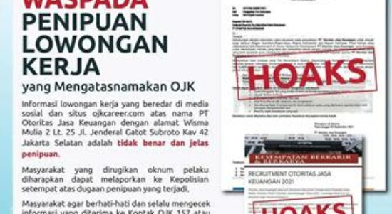 Masyarakat Harus Waspada Informasi Hoax Rekrutmen Pegawai OJK