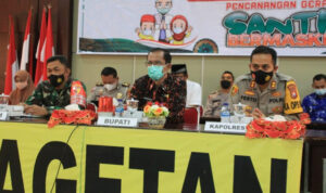 MAGETAN – Bertempat di Ruang eksekutif Polres Magetan, Bupati Magetan, Dr. Drs. Suprawoto, SH, M.Si ikuti Giat Vidcon Dalam Rangka Pencanangan Gerakan