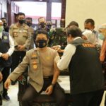Surabaya – Kapolda Jawa Timur, Irjen Pol Nico Afinta bersama Pangkoarmada II, Laksda TNI I.N.G. Sudihartawan. Melakukan vaksinasi di Makodam V Brawijaya,
