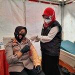 Surabaya – Kapolres Pelabuhan Tanjung Perak AKBP Ganis Setyaningrum, giat menghadiri Pencanangan Vaksinasi Covid 19 Kota Surabaya di halaman Balaikota Surabaya Jalan