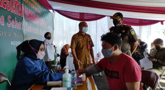 Kediri—Mempercepat dan Mendukung Program Vaksinasi Nasional, Kejaksaan Negeri Kabupaten Kediri Gadeng 350 warga disekitar Kantor Kejaksaan Jalan Pamenang Kabupaten Kediri. Selain bertepatan