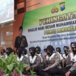 LAMONGAN – Kepolisian Resort (Polres) Lamongan menggelar peringatan kelahiran Nabi Muhammad, Jumat (30/10/2020) yang berlangsung di Gedung SKJ Mapolres. Peringatan kali ini