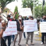 LAMONGAN – Puluhan wartawan di Lamongan dari berbagai media diantaranya cetak, online dan elektronik menggelar aksi solidaritas damai di depan Mapolres Lamongan,