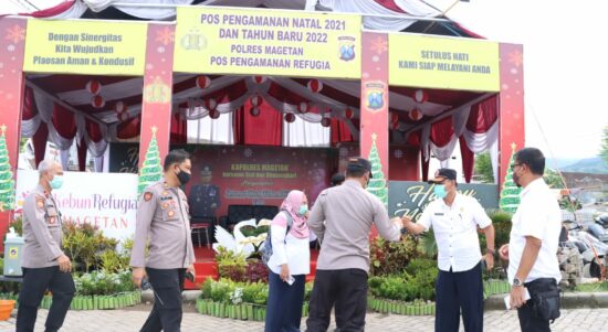 MAGETAN | JATIM.SIBERINDO.CO – Jelang libur Natal 2021 dan tahun baru 2022, Kapolres Magetan bersama PJU Polres Magetan, meninjau kesiapan Pos pengamanan