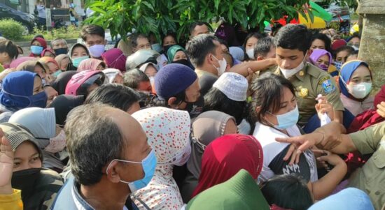 MAGETAN | JATIM.SIBERINDO.CO – Ribuan warga Kabupaten Magetan Jawa Timur, menyerbu Kantor UPT Bapenda Jatim, Kabupaten Magetan, untuk berburu minyak goreng murah.