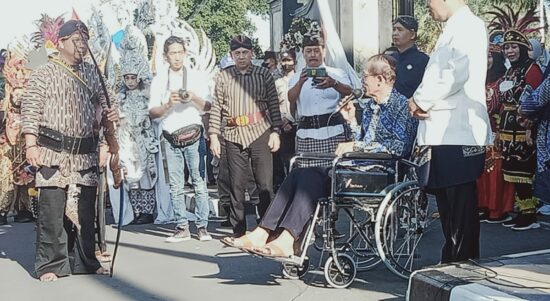 Magetan | Jatim.Siberindo.Co – Meskipun menggunakan kursi roda karena cidera, Bupati Magetan Suprawoto tetap semangat untuk memberangkatkan “Kirab Sedaya” dalam rangkaian Hari
