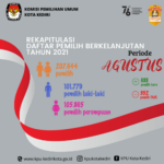 KEDIRI – Jumlah pemilih baru di Kota Kediri pada bulan Agustus 2021 terdapat 688 pemilih. Hal itu diungkapkan Ketua KPU Kota Kediri,