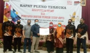 KEDIRI – Komisi Pemilihan Umum (KPU) Kabupaten Kediri, Jum’at 16 Oktober 2020 siang, menggelar rapat pleno terbuka rekapitulasi DPSHP dan penetapan Daftar
