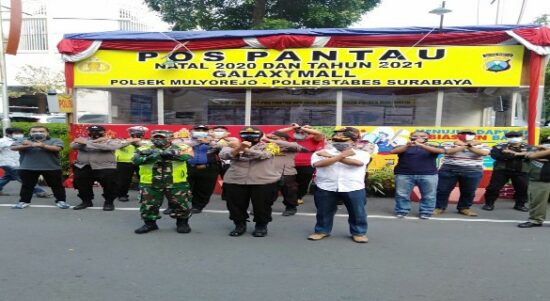 Surabaya – Sambut perayaan malam Natal dan Tahun Baru 2021, Kamis (24/12/2020) sore, Kepolisian Sektor Mulyorejo Jajaran Polrestabes Surabaya bersama unsur 3