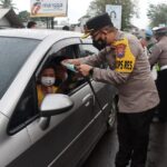 BONDOWOSO | Jatim.Siberindo.Co – Sejumlah pengguna jalan yang melintas di depan Mako Polres Bondowoso, mendapatkan masker dari anggota Polres Bondowoso, yang merupakan