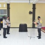 LAMONGAN – Kepala Kepolisian Resort (Polres ) Lamomgan AKBP Harun memimpin serah terima jabatan (Sertijab) Kasatlantas Polres Lamongan dan pergantian Kapolsek Sukodadi
