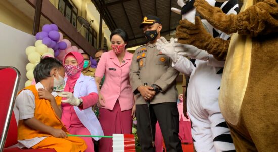 Polres Magetan Bersama Alumni AKABRI 2001 Gelar Vaksinasi Masal untuk Anak