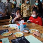 Mojokerto – Peresmian kafe milik dua pemuda yang berhasil sembuh dari ketergantungan Narkoba oleh Menteri Sosial Tri Rismaharini. Risma pun sempat mencicipi wedang