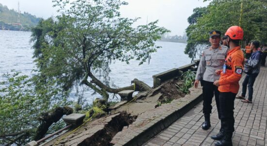 Pasca Terjadi Tebing Longsor, Kini Talud Telaga Sarangan juga Ambrol