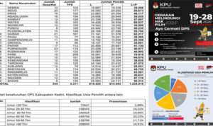 KEDIRI – Pemilihan Kepala Daerah (Pilkada) di Kabupaten Kediri tahun 2020 telah memasuki tahapan pemutakhiran dan penyusunan Daftar Pemilih Sementara (DPS). DPS